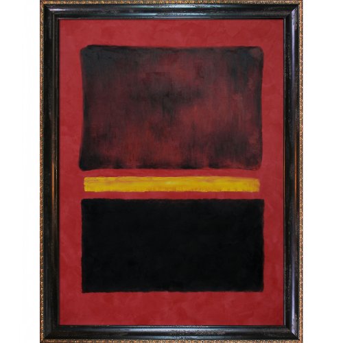 Framed paintings arrive ready to hang on your wall with hanging hardware included.La scala frame - black and gold finish.- framed oil reproduction of an original painting by mark rothko.100% handmade oil painting on artist grade canvas - certificate of authenticity included.Framed painting size (not including frame): extra large 30" x 40". Hand painted oil reproduction of a famous Rothko painting, Untitled,1956. Today it has been carefully recreated detail by detail, color by color to near perfection. Pioneer of the color field painters, Mark Rothko concentrated on basic emotions rather than form in his works. His canvases were often filled with a few intense colors and little detail. Many of his works are scattered in museums throughout the world.