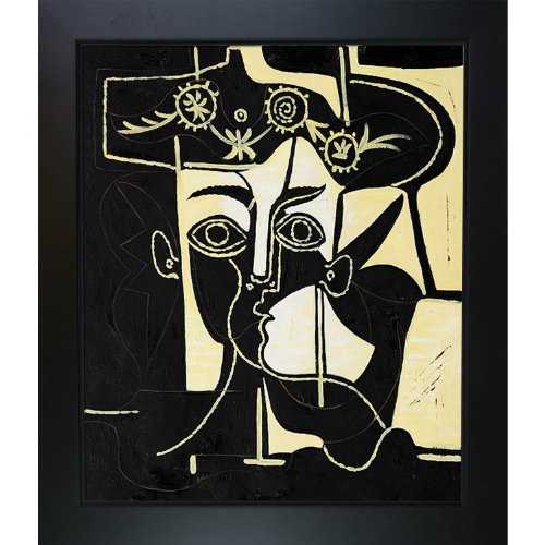 overstockArt 1962 Pablo Picasso Femme au Chapeau Orne 20-Inch by 24-Inch Framed Oil on Canvas Feature