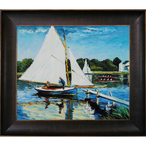 Framed painting size (exterior dimensions inches): 26.5-inch by 2-inch.Framed paintings arrive ready to hang on your wall with hanging hardware included.Sailing at argenteuil - framed oil reproduction of an original painting by claude monet.Framed painting size (not including frame): classic 20-inch x 24-inch.100-percent handmade oil painting on artist grade canvas - certificate of authenticity included..