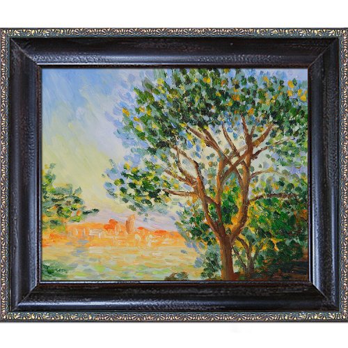 overstockArt Monet View of Antibes with La Scala Frame Oil Painting, Black and Gold Finish by overstockArt
