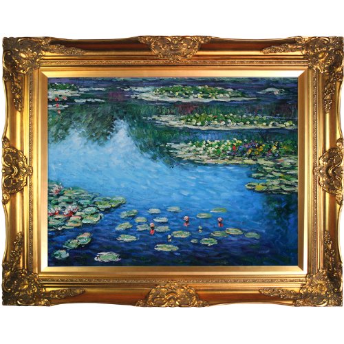 Water lilies - framed oil reproduction of an original painting by claude monet.Framed painting size (exterior dimensions inches): 38-inch by 2-inch.Framed paintings arrive ready to hang on your wall with hanging hardware included.Framed painting size (not including frame): extra large 30-inch x 40-inch.100-percent handmade oil painting on artist grade canvas - certificate of authenticity included. 30-inch by 40-inch oil painting on canvas hand painted oil reproduction of a famous monet painting, water lilies. Today it has been carefully recreated detail-by-detail, color-by-color to near perfection.