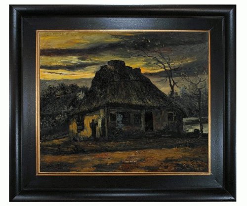 overstockArt Van Gogh The Cottage 1885 with Vintage Creed Frame Oil Painting, Distressed Rich Black Stained Wood with Gold Liner by overstockArt