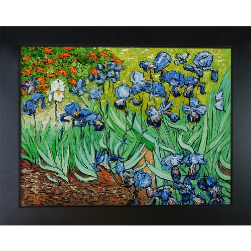 100-percent handmade oil painting on artist grade canvas - certificate of authenticity included.Framed paintings arrive ready to hang on your wall with hanging hardware included.Framed painting size (exterior dimensions inches): 34.75-inch by 2-inch.Irises - framed oil reproduction of an original painting by vincent van gogh.Framed painting size (not including frame): extra large 30-inch x 40-inch. 30-inch by 40-inch oil painting on canvas hand painted oil reproduction of a famous van gogh painting, irises. The original masterpiece was created in 1889. Today it has been carefully recreated detail by detail, color by color to near perfection.