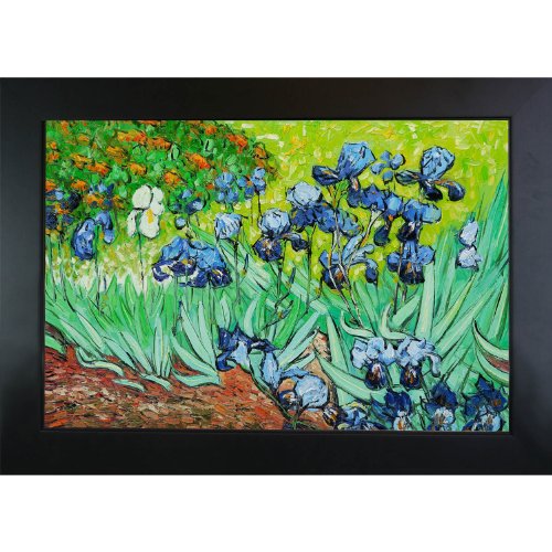 Framed painting size (not including frame): large 24-inch x 36-inch.Framed paintings arrive ready to hang on your wall with hanging hardware included.Framed painting size (exterior dimensions inches): 28.75-inch by 2-inch.100-percent handmade oil painting on artist grade canvas - certificate of authenticity included.Irises - framed oil reproduction of an original painting by vincent van gogh..