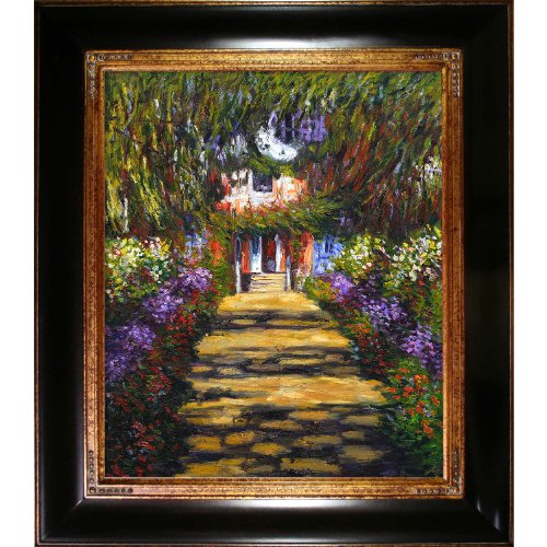Hand-Painted Reproduction of Claude Monet Garden Path at Giverny Framed Oil Painting, 20 x 24 Feature