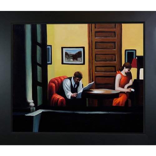 New age wood frame - black finish.Framed oil reproduction of an original painting by edward hopper.Framed paintings arrive ready to hang on your wall with hanging hardware included.Framed painting size (not including frame): classic 20-inch by 24-inch.100-percent handmade oil painting on artist grade canvas - certificate of authenticity included..