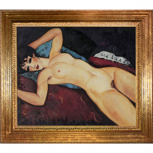 100-percent handmade oil painting on artist grade canvas - certificate of authenticity included.Framed paintings arrive ready to hang on your wall with hanging hardware included.Framed painting size (not including frame): classic 20-inch by 24-inch.- framed oil reproduction of an original painting by amedeo modigliani.Vienna wood frame - gold leaf finish..