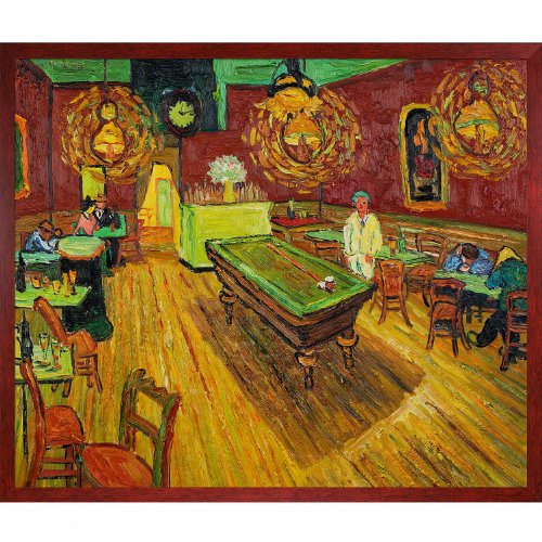 Framed paintings arrive ready to hang on your wall with hanging hardware included.Framed painting size (not including frame): classic 20-inch x 24-inch.The night cafe - framed oil reproduction of an original painting by vincent van gogh.Framed painting size (exterior dimensions inches): 21.5-inch by 2-inch.100-percent handmade oil painting on artist grade canvas - certificate of authenticity included..