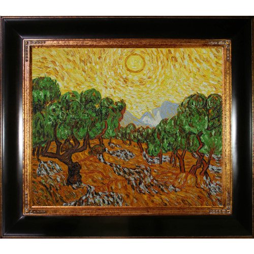 overstockArt VG550-FR-240G20X24 Vincent Van Gogh Olive Trees with Yellow Sun and Sky 20-Inch by 24-Inch Framed Oil on Canvas Feature