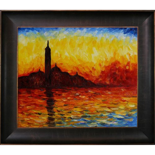 Framed painting size (not including frame): classic 20-inch x 24-inch.Framed paintings arrive ready to hang on your wall with hanging hardware included.San giorgio maggiore by twili - framed oil reproduction of an original painting by claude monet.Framed painting size (exterior dimensions inches): 26.5-inch by 2-inch.100-percent handmade oil painting on artist grade canvas - certificate of authenticity included..