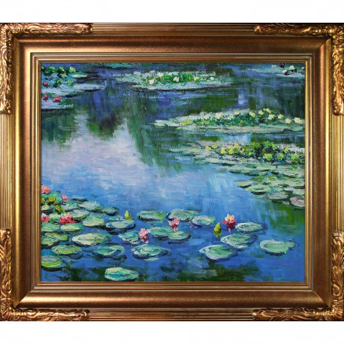 Framed painting size (exterior dimensions inches): 27-inch by 2-inch.Framed painting size (not including frame): classic 20-inch x 24-inch.Framed paintings arrive ready to hang on your wall with hanging hardware included.Water lilies - framed oil reproduction of an original painting by claude monet.100-percent handmade oil painting on artist grade canvas - certificate of authenticity included..