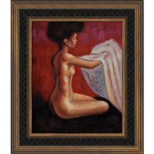 overstockArt Munch Paris Nude Artwork with Cottage Oak Frame/Diamond Patterned Bronze Dark Stain Finish Feature