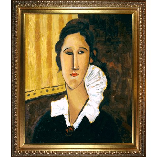 Elegant Wood Frame; Gold Finish Portrait of Anna Zborovska; Framed Oil reproduction of an original painting by Amedeo Modigliani Framed painting size (not including frame): Classic 20" X 24" 100-Percent handmade oil painting on artist grade canvas; certificate of authenticity included Framed paintings arrive ready to hang on your wall with hanging hardware included