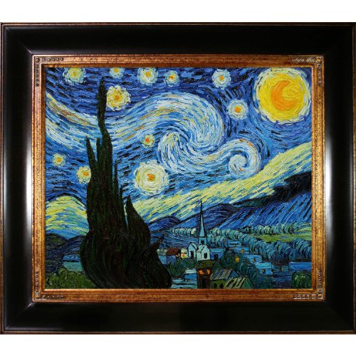 overstockArt VG485-FR-240G20X24 Vincent Van Gogh Starry Night 20-Inch by 24-Inch Framed Oil on Canvas Feature