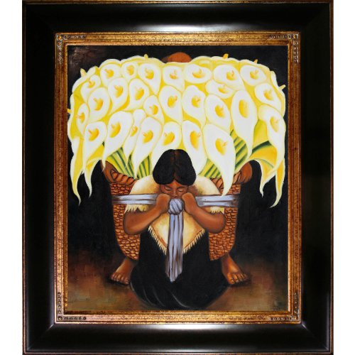 Framed paintings arrive ready to hang on your wall with hanging hardware included 100-percent handmade oil painting on artist grade canvas - certificate of authenticity included El vendedor de alcatraces - framed oil reproduction of an original painting by diego rivera Framed painting size (not including frame): classic 20-inch x 24-inch Framed painting size (exterior dimensions inches): 29-inch by 2-inch