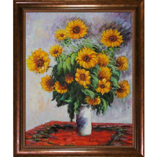Overstockart Mon2630-Fr-930116X20 Monet Sunflowers with Verona Cafe Coffee Brown Patina Finish Feature