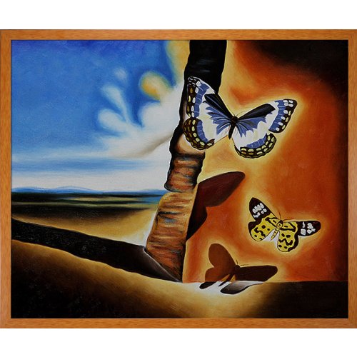 Framed paintings arrive ready to hang on your wall with hanging hardware included Framed painting size (exterior dimensions inches): 21.5-inch by 2-inch 100-percent handmade oil painting on artist grade canvas - certificate of authenticity included Framed painting size (not including frame): classic 20-inch x 24-inch Landscape with butterflies - framed oil reproduction of an original painting by salvador dali