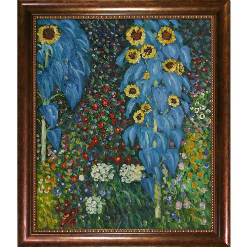 overstockArt KL1778-FR-930120X24 Klimt Farm Garden with Sunflowers with Verona Cafe Coffee Painting, Brown Patina Finish with Feature