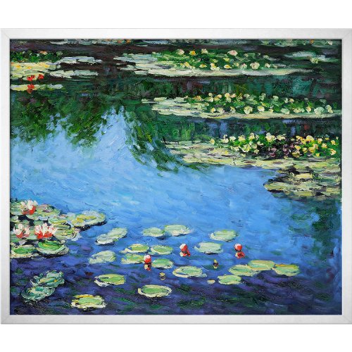 Framed painting size (not including frame): classic 20-inch x 24-inch 100-percent handmade oil painting on artist grade canvas - certificate of authenticity included Framed paintings arrive ready to hang on your wall with hanging hardware included Water lilies - framed oil reproduction of an original painting by claude monet Framed painting size (exterior dimensions inches): 21.5-inch by 2-inch