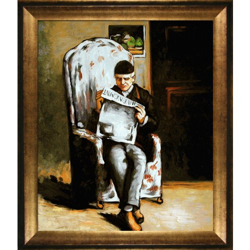 Framed paintings arrive ready to hang on your wall with hanging hardware included Framed painting size (not including frame): classic 20-inch x 24-inch Artist's father reading - framed oil reproduction of an original painting by paul cezanne Framed painting size (exterior dimensions inches): 25-inch by 2-inch 100-percent handmade oil painting on artist grade canvas - certificate of authenticity included