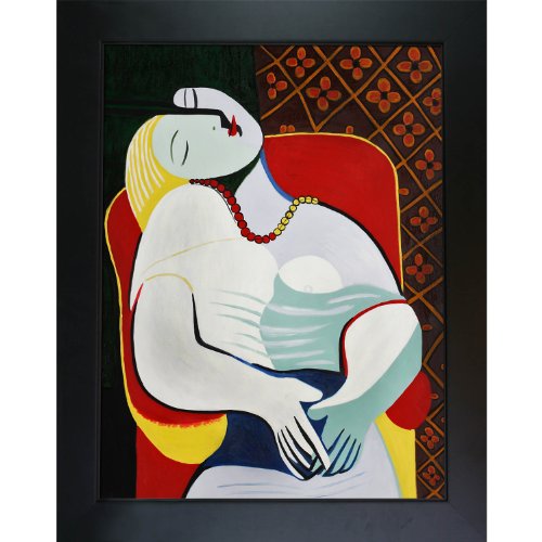 The Dream; Framed Oil reproduction of an original painting by Pablo Picasso Framed painting size (not including frame): Extra Large 30" X 40" 100-Percent handmade oil painting on artist grade canvas; certificate of authenticity included Framed paintings arrive ready to hang on your wall with hanging hardware included New Age Wood Frame; Black Finish