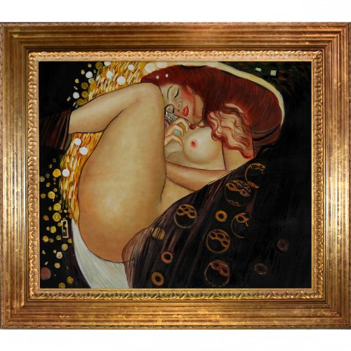 overstockArt Klimt Danae with Vienna Wood Frame Oil Painting, Gold Leaf Finish Feature