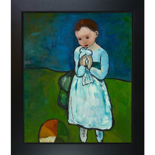 100-percent handmade oil painting on artist grade canvas - certificate of authenticity included New age wood frame - black finish Framed paintings arrive ready to hang on your wall with hanging hardware included Framed painting size (not including frame): classic 20-inch by 24-inch - framed oil reproduction of an original painting by pablo picasso