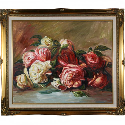Framed paintings arrive ready to hang on your wall with hanging hardware included 100-percent handmade oil painting on artist grade canvas - certificate of authenticity included Framed painting size (exterior dimensions inches): 26-inch by 2-inch Framed painting size (not including frame): classic 20-inch x 24-inch Discarded roses - framed oil reproduction of an original painting by pierre auguste renoir