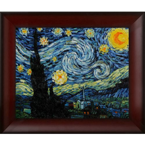 overstockArt Van Gogh Starry Night with Oxblood Scoop Deep Red Finish with Concave Detail Feature