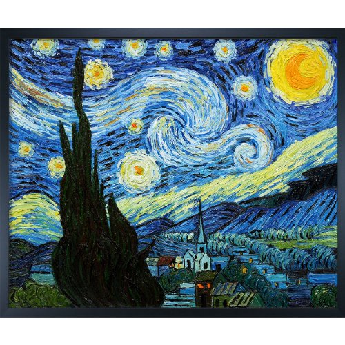 Starry night - framed oil reproduction of an original painting by vincent van gogh Framed painting size (exterior dimensions inches): 21.5-inch by 2-inch 100-percent handmade oil painting on artist grade canvas - certificate of authenticity included Framed painting size (not including frame): classic 20-inch x 24-inch Framed paintings arrive ready to hang on your wall with hanging hardware included