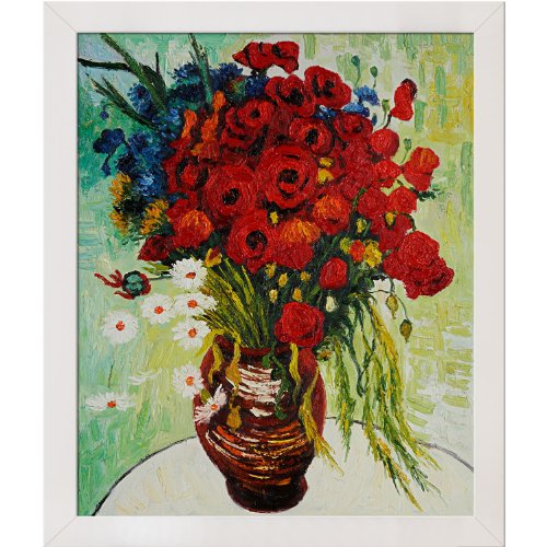 overstockArt Van Gogh Vase with Daisies and Poppies Oil Painting, Simply White, Clean Line Wood Frame Feature