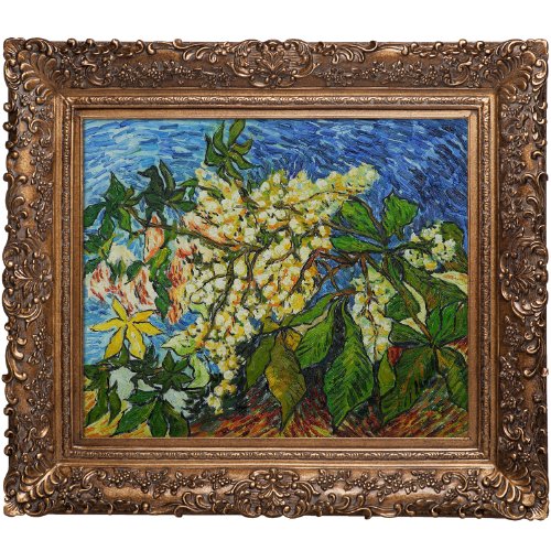 overstockArt Blossoming Chestnut Branches Oil Painting Painting with Burgeon Gold Frame by Van Gogh Feature