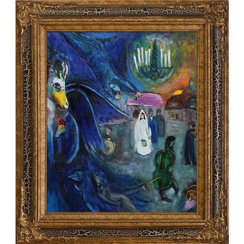 Framed painting size (exterior dimensions inches): 28-inch by 2-inch Framed paintings arrive ready to hang on your wall with hanging hardware included The wedding candles,1945 - framed oil reproduction of an original painting by marc chagall 100-percent handmade oil painting on artist grade canvas - certificate of authenticity included Framed painting size (not including frame): classic 20-inch x 24-inch
