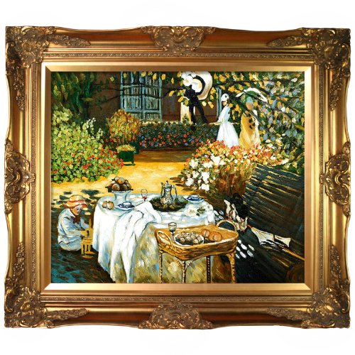 Framed painting size (not including frame): classic 20-inch x 24-inch Framed painting size (exterior dimensions inches): 28-inch by 2-inch Framed paintings arrive ready to hang on your wall with hanging hardware included 100-percent handmade oil painting on artist grade canvas - certificate of authenticity included The luncheon - framed oil reproduction of an original painting by claude monet