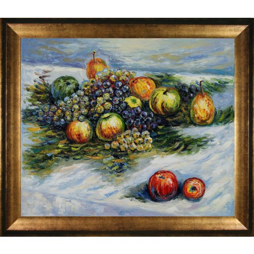 overstockArt Monet Pears and Grapes with Athenian Gold Frame Oil Painting, Antique Finish Feature