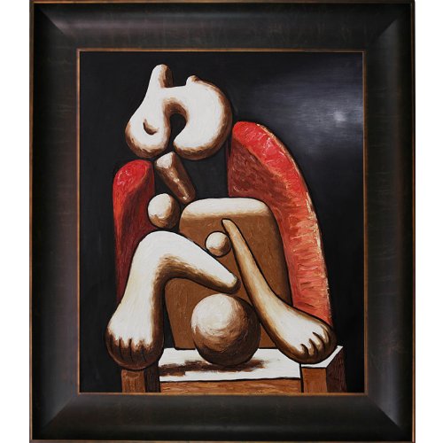 Framed painting size (exterior dimensions inches): 26.5-inch by 2-inch Woman in red armchair - framed oil reproduction of an original painting by pablo picasso Framed paintings arrive ready to hang on your wall with hanging hardware included Framed painting size (not including frame): classic 20-inch x 24-inch 100-percent handmade oil painting on artist grade canvas - certificate of authenticity included