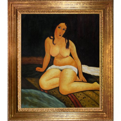 100-Percent handmade oil painting on artist grade canvas; certificate of authenticity included Seated Nude, 1917; Framed Oil reproduction of an original painting by Amedeo Modigliani Framed painting size (not including frame): Classic 20" X 24" Framed paintings arrive ready to hang on your wall with hanging hardware included Vienna Wood Frame; Gold Leaf Finish