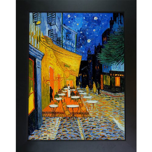 Cafe terrace - 30x40 - framed oil reproduction of an original painting by vincent van gogh Framed painting size (not including frame): extra large 30-inch x 40-inch Framed painting size (exterior dimensions inches): 34.75-inch by 2-inch 100-percent handmade oil painting on artist grade canvas - certificate of authenticity included Framed paintings arrive ready to hang on your wall with hanging hardware included