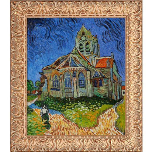 overstockArt Van Gogh The Church at Auvers Painting with Espana Gold Finish Frame Feature