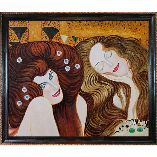 Framed paintings arrive ready to hang on your wall with hanging hardware included - framed oil reproduction of an original painting by gustav klimt Framed painting size (not including frame): classic 20" x 24" 100% handmade oil painting on artist grade canvas - certificate of authenticity included La scala frame - black and gold finish
