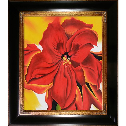Overstockart Oke2077-Fr-240G20X24 O'Keeffe Red Amaryllis with Opulent Frame, Dark Stained Wood with Gold Trim Feature